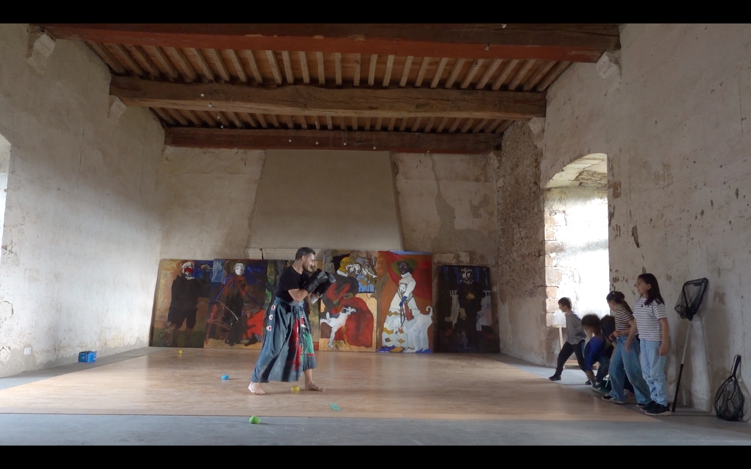 Apres une exposition hors les murs institutionnels où furent réalisé deux performances avec des étudiants et des enfants, je pris le large en 2024 en choisissant pour récepteurs et acteurs de ma thèse une classe de CM1. En racontant ma thèse aux enfants, certains écrous sautaient : penser et faire en mouvement pouvait se faire sous le regard des enfants et dans des espaces relativement adapté et dégagé, en interdépendance.
